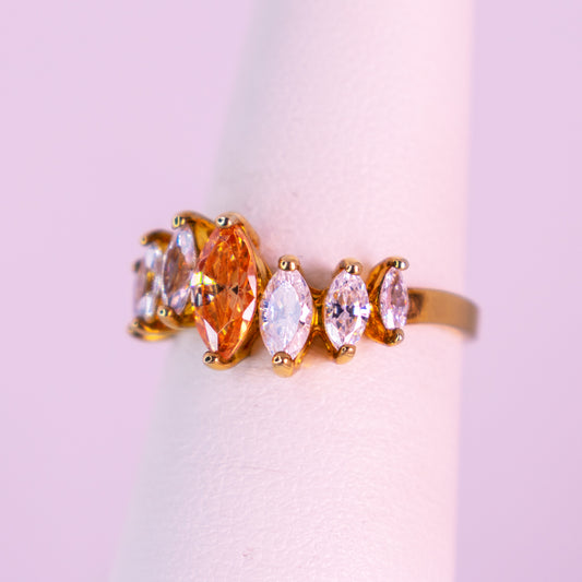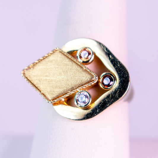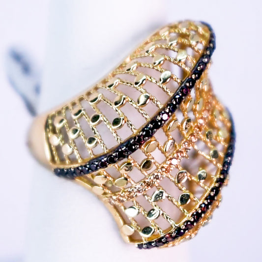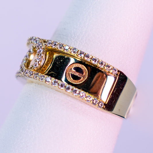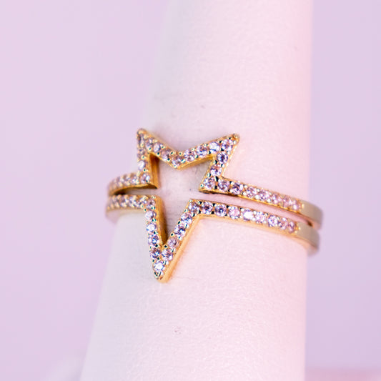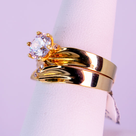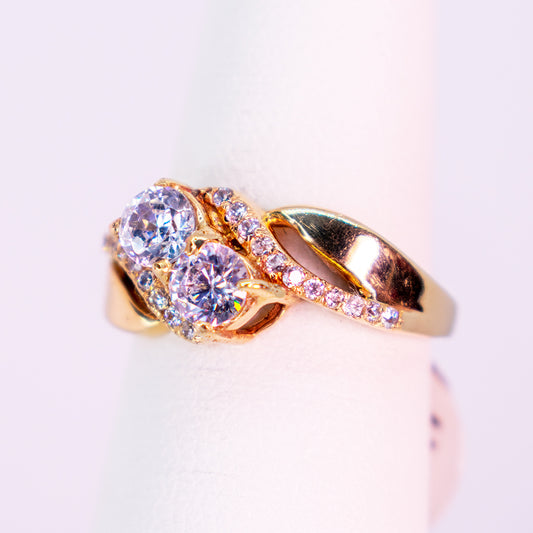 10 K Gold Ring with Double Zirconia and Radiant Shine
